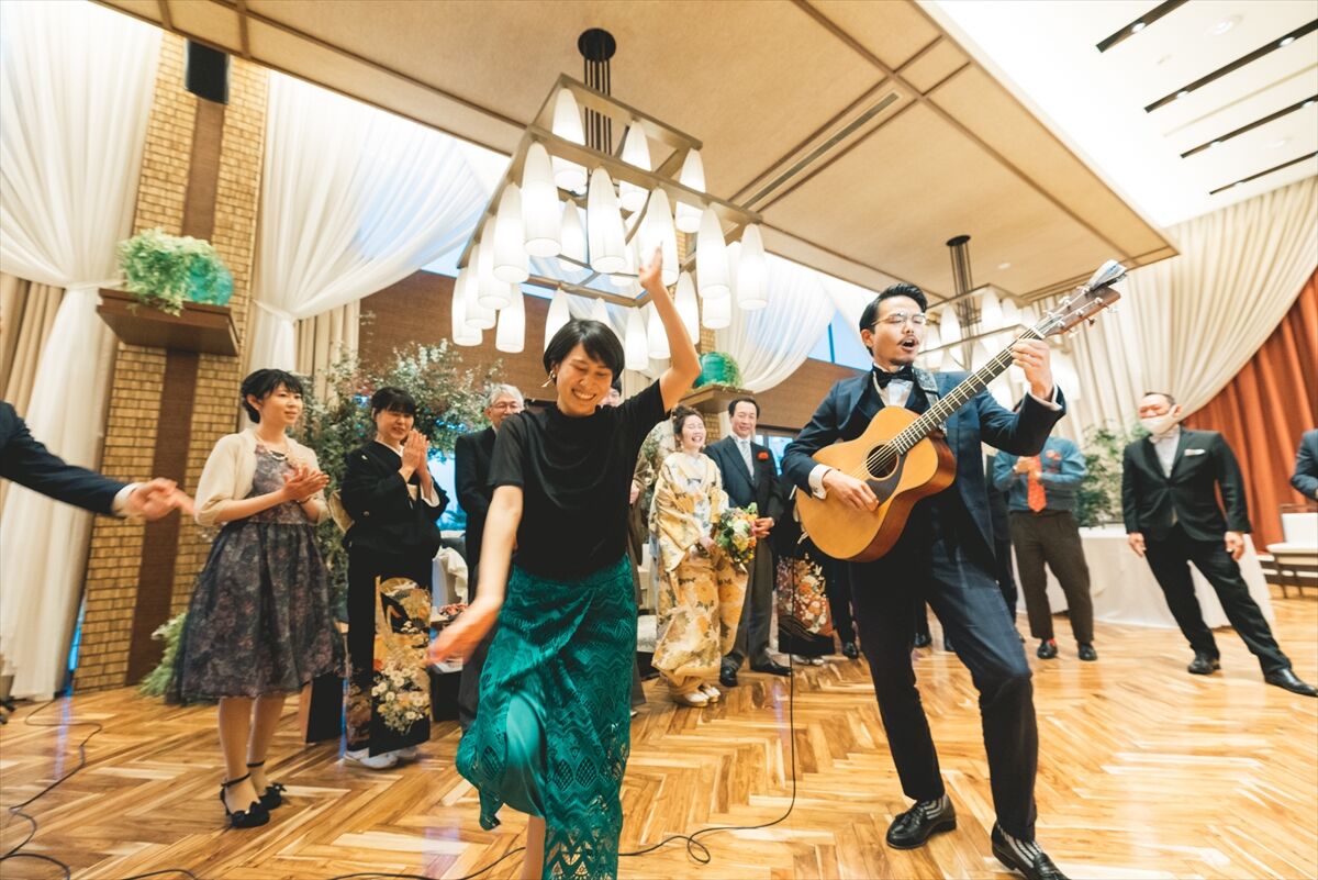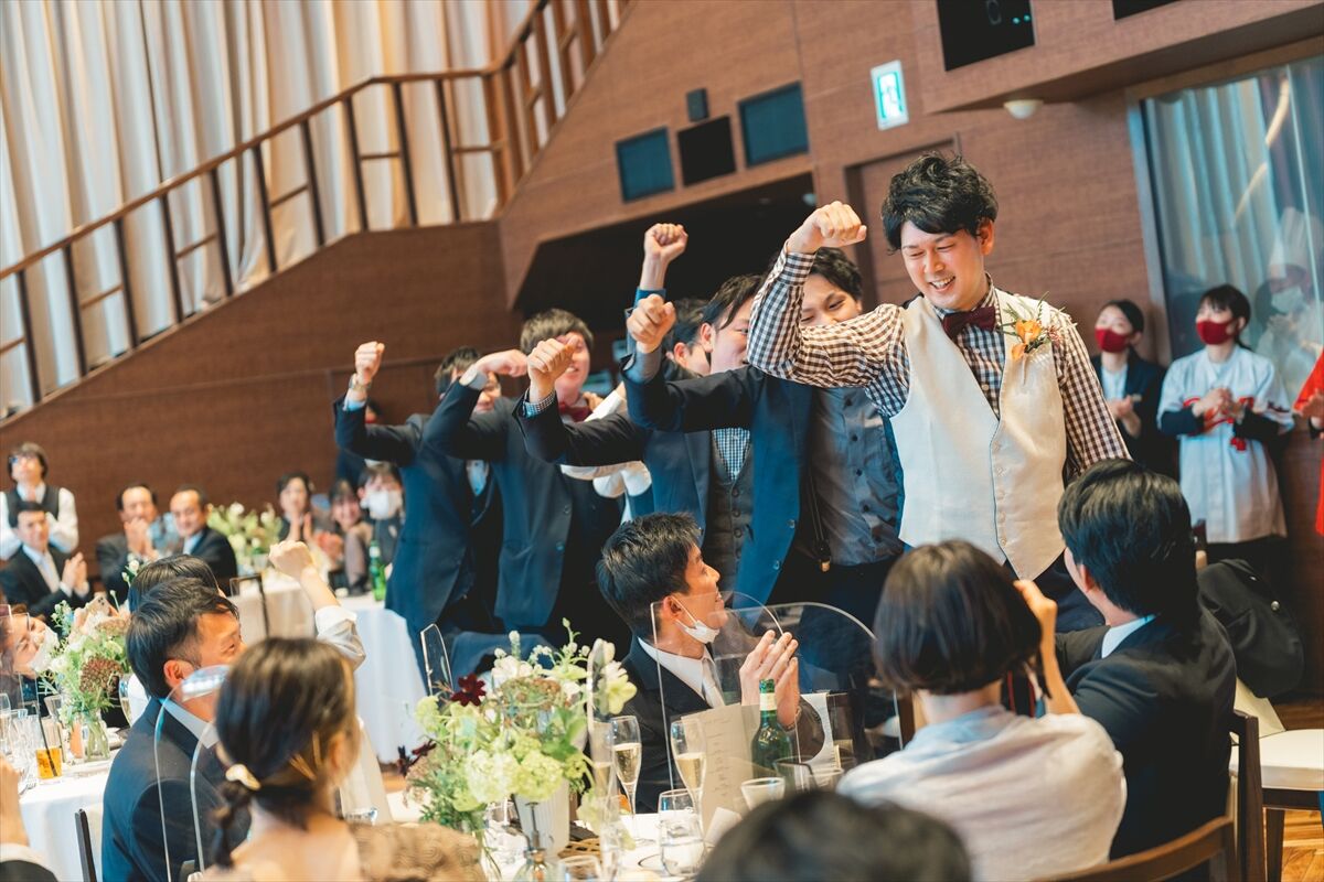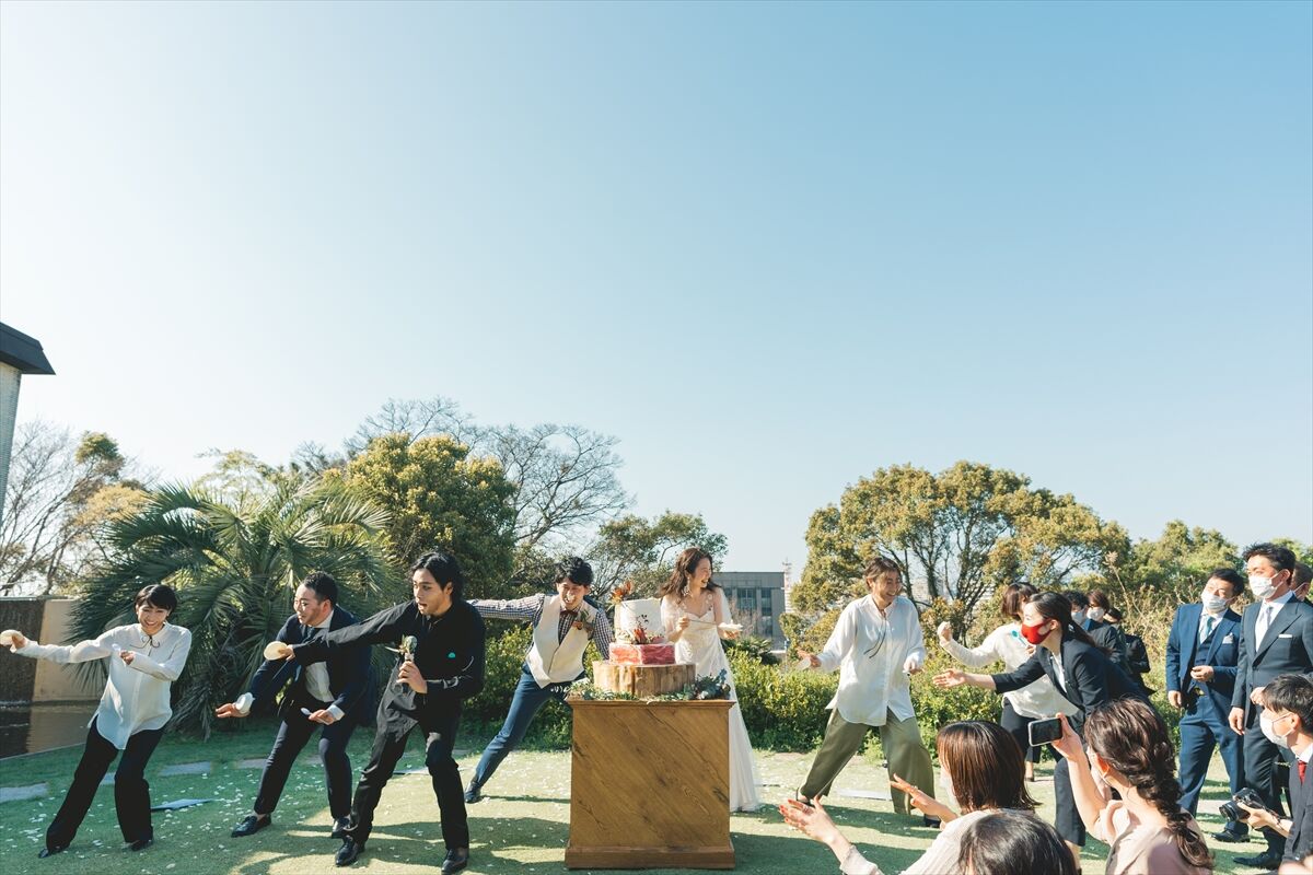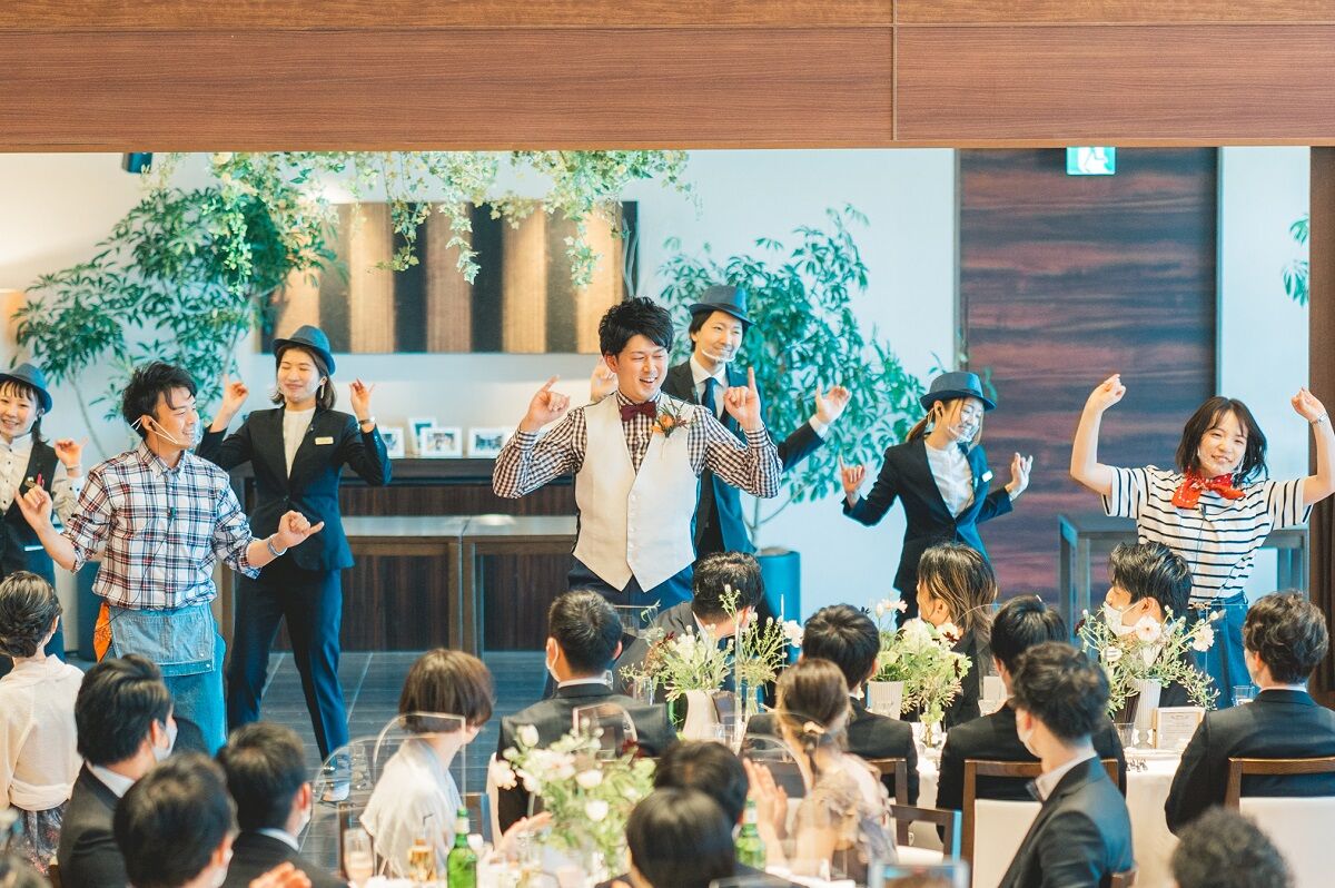 新郎とダンサーズが踊って乾杯準備をすれば