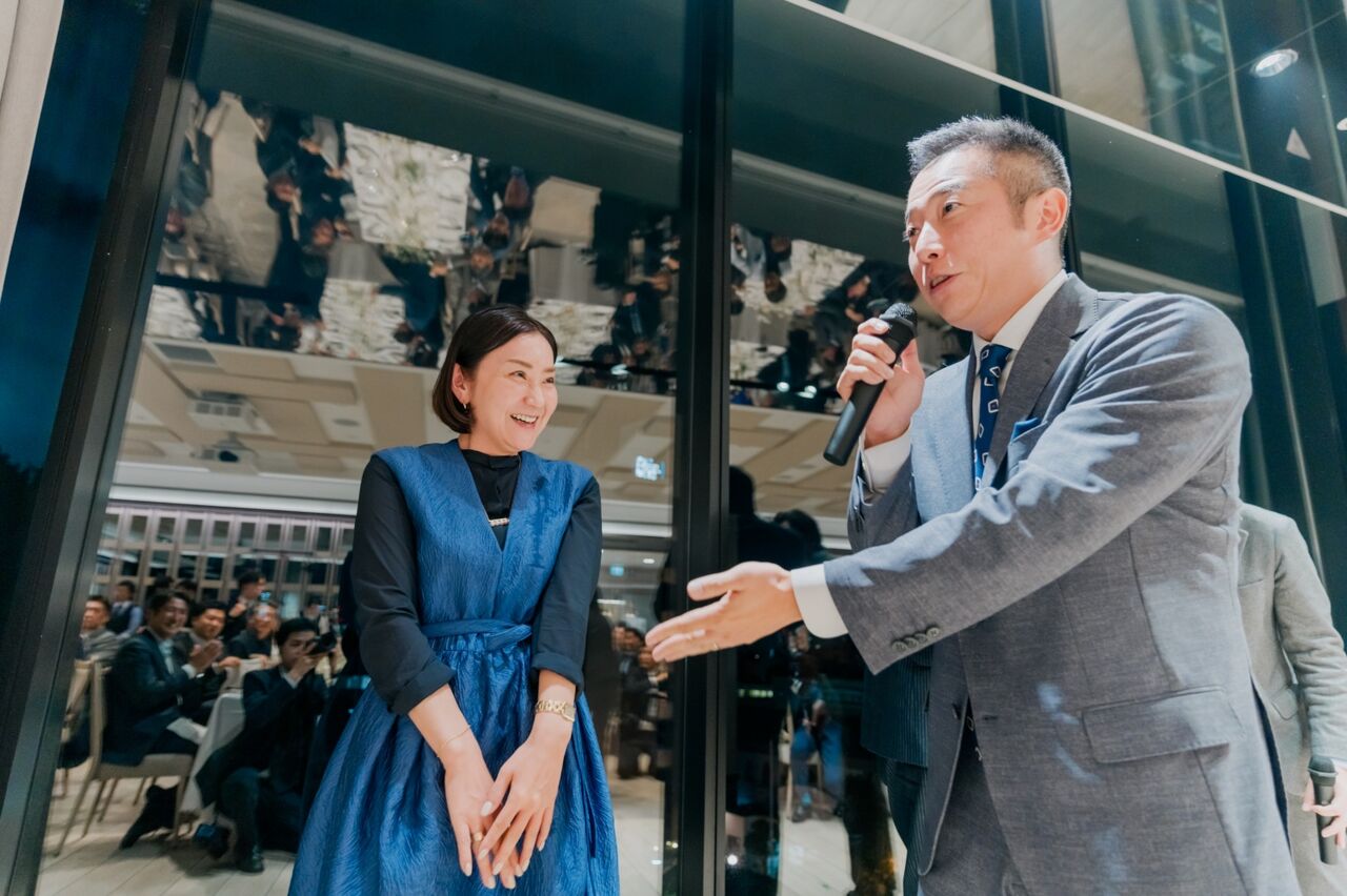 この日のドレスコードはもちろん「ブルー」